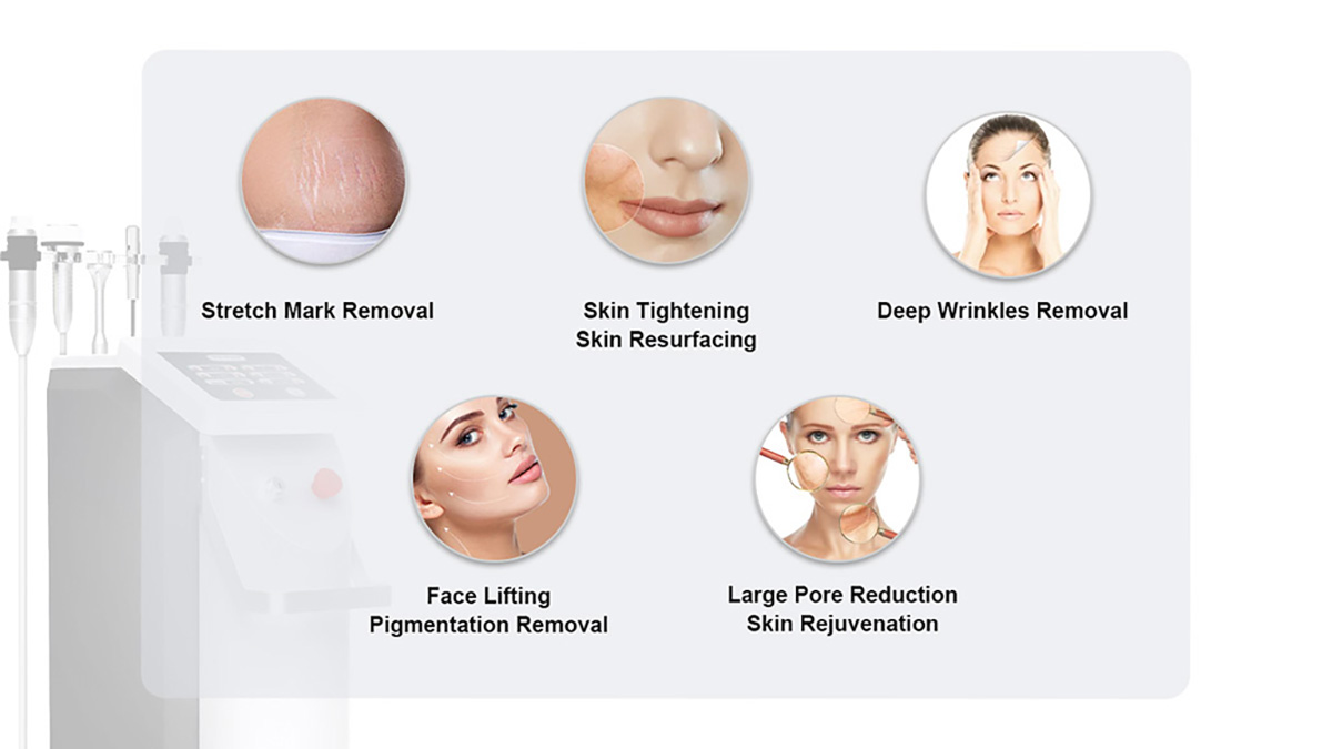 FRACTIONAL RF applicator for non-invasive wrinkle reduction, suitable for the patients fear of needle, no down time, recovery soon.