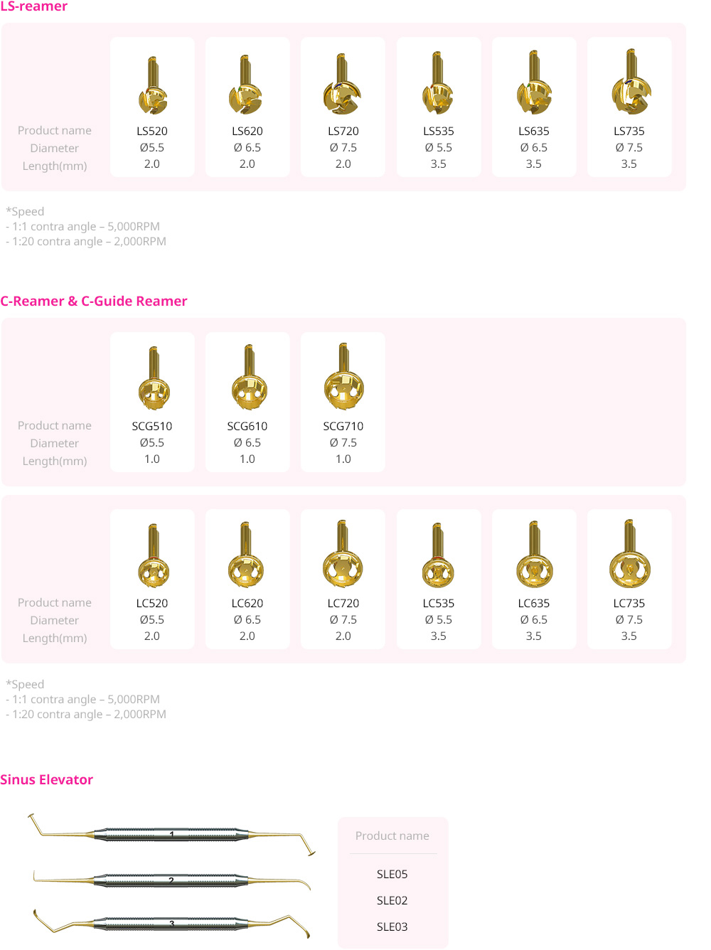 • Reamers designed to be used with conventional surgical motor handpiece at 2,000rpm