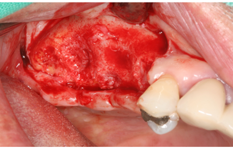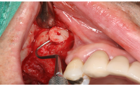 • Cover the lateral hole with a collagen membrane.