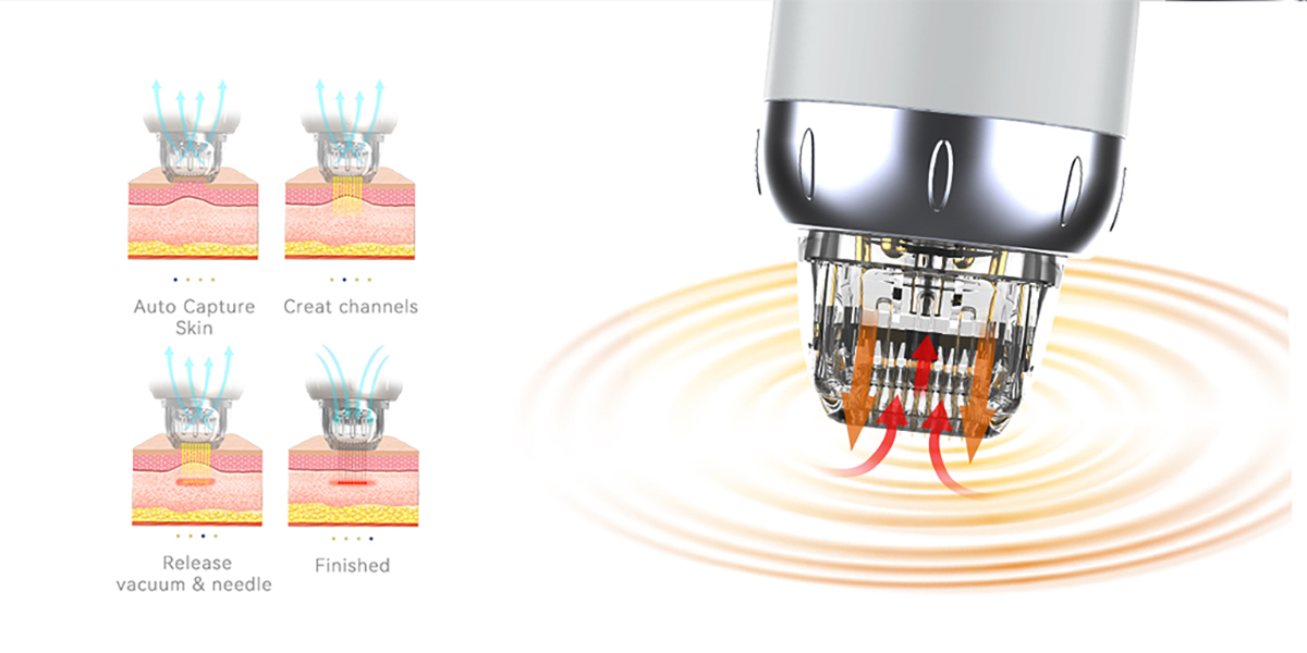 Micro needle rf machine add vacuum on the original basis of radio frequency. The vacuum absorbs the skin, and then the needling release energy, it can avoid the uneven energy of the needle intrusion into the skin due to skin elasticity. The treatment effect is better than ordinary radio frequency.