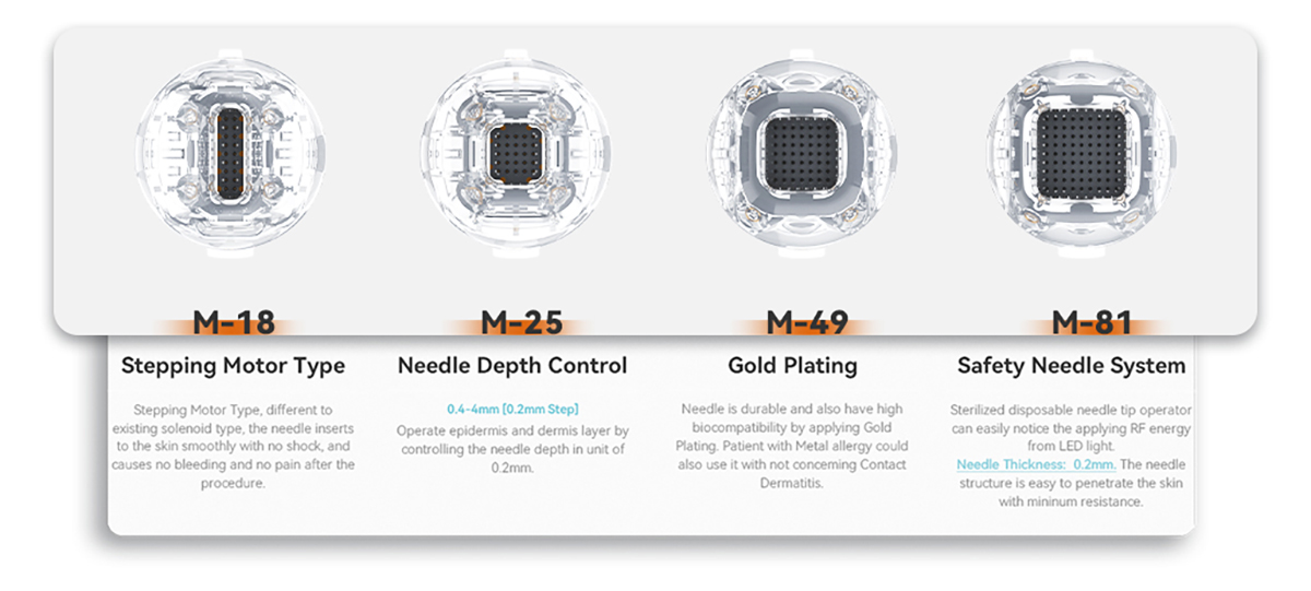 Operate epidermis and dermis layer by controlling the needle depth in unit of 0.2mm.