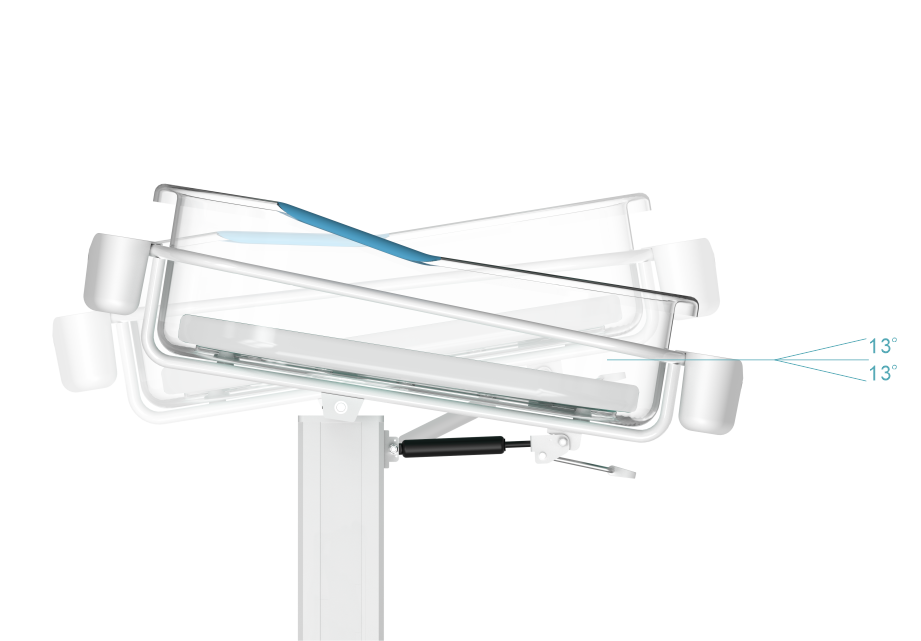 The infant bassinet features bidirectional tilting functionality with stepless adjustment within ±13°, effectively helping reduce infant regurgitation.