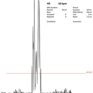-Thanks to signal averaging and high-pass filtering, high-frequency late potentials can be recognised.