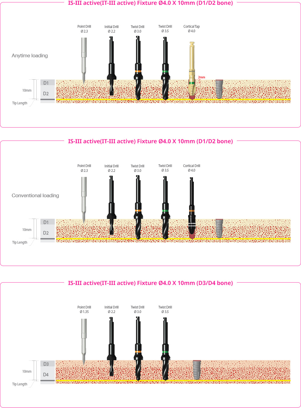 IS-III active(IT-III active) Fixture Ø4.0 X 10mm (D3/D4 bone)