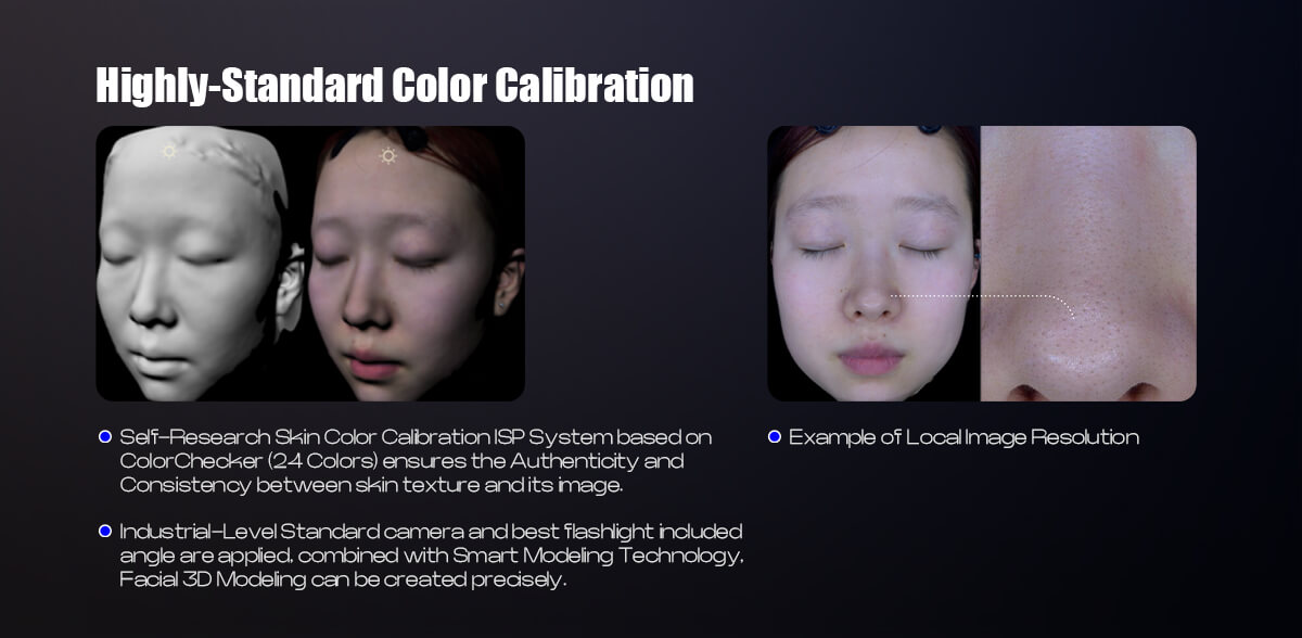 -Self-Research Skin Color Calibration ISP System based on ColorChecker (24 Colors) ensures the Authenticity and Consistency between skin texture and its image.