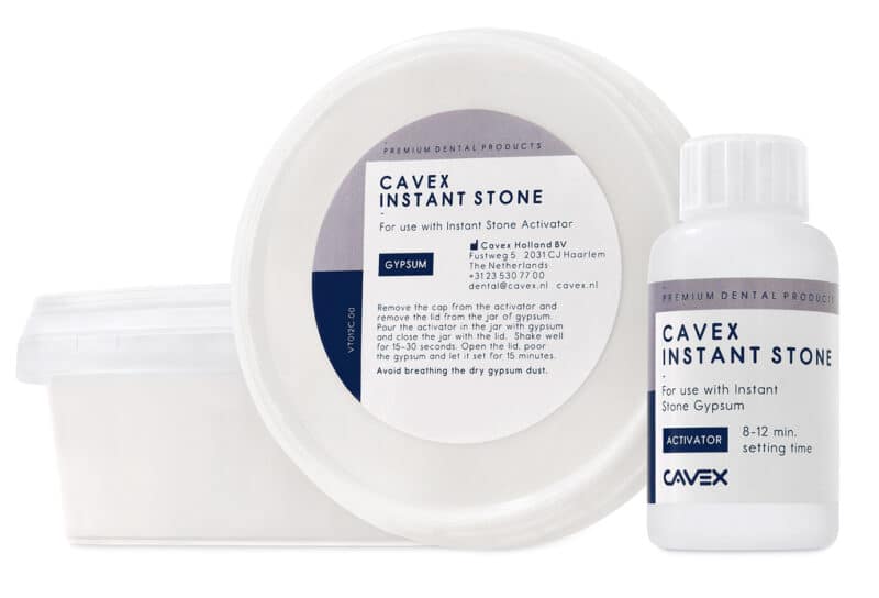 -Cavex Instant Stone is a unique gypsum composite to make a perfect gypsum model in just 15 minutes. Equipped with a highly sophisticated mixing system, Cavex Instant Stone is very clean and user-friendly