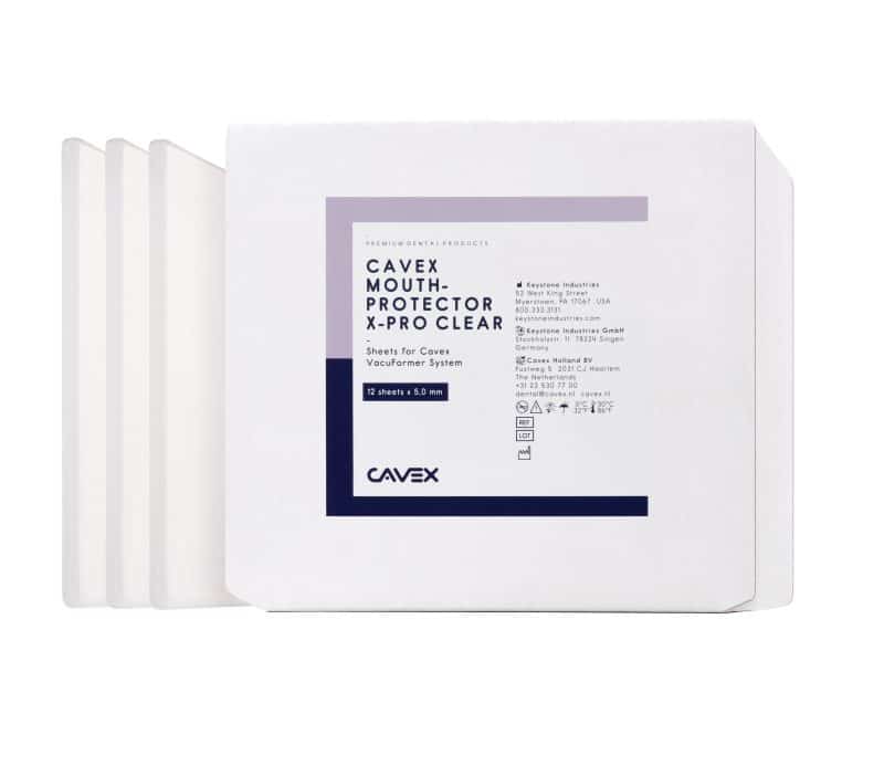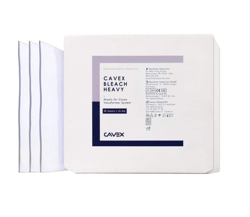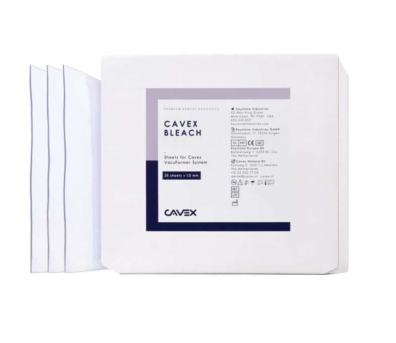 Combine Cavex VacuFormer thermal vacuum system and VacuFormer laminates to produce perfectly fitting individual bleaching trays. VacuFormer laminates are made of soft, clear material (EVA) which is easy to cut and finish. The wide range of deep drawing plates also offers products for making mouthguards and splints.