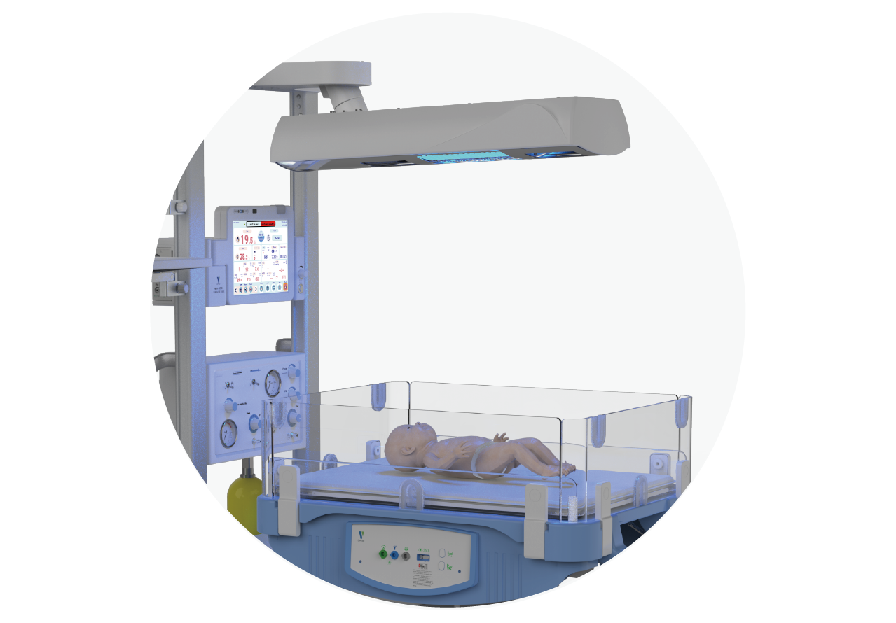 1) Intensive phototherapy, using Blue LED light source, in line with the American Academy of Pediatrics (AAP) guidelines for strong light therapy equipment.