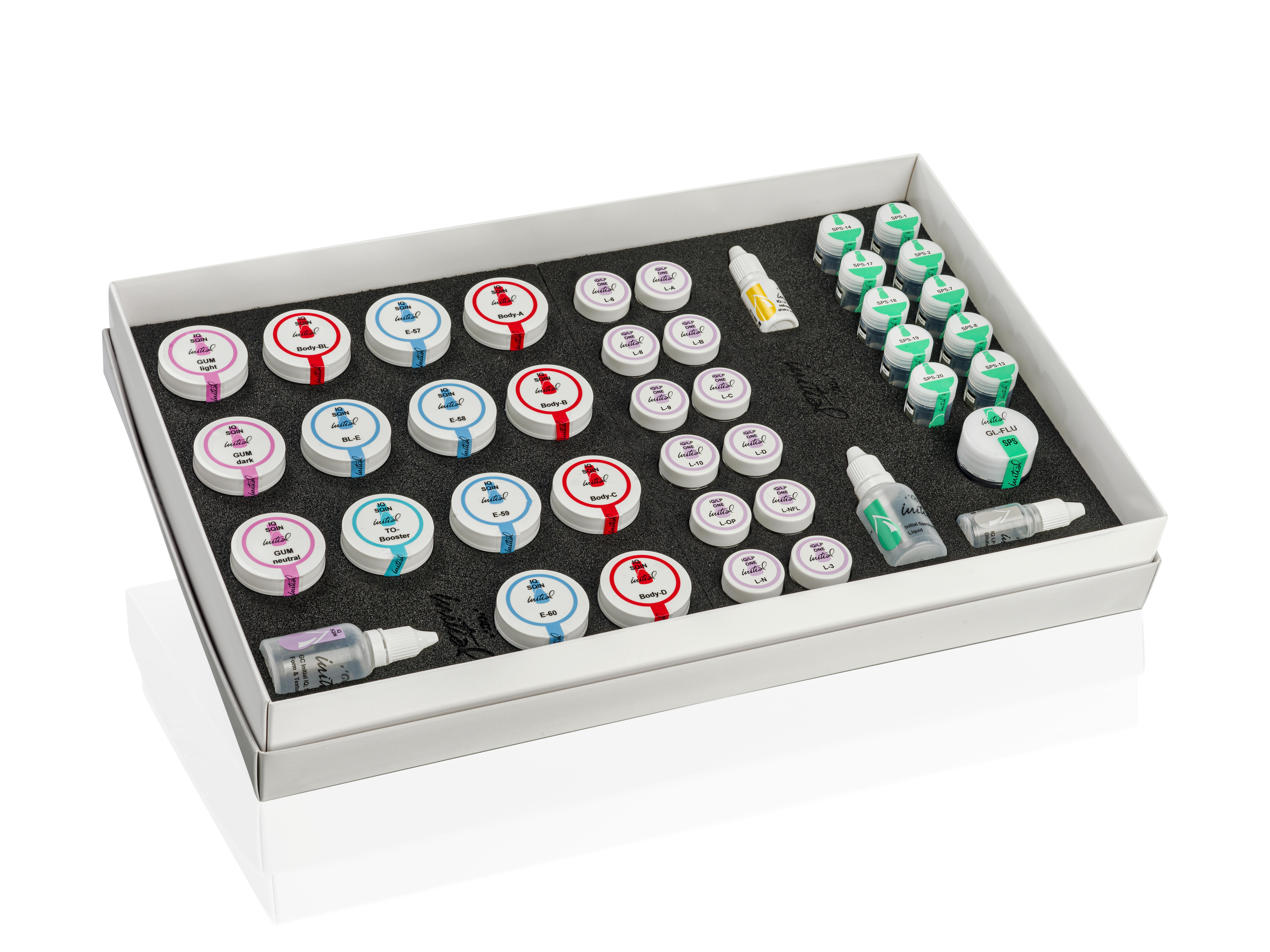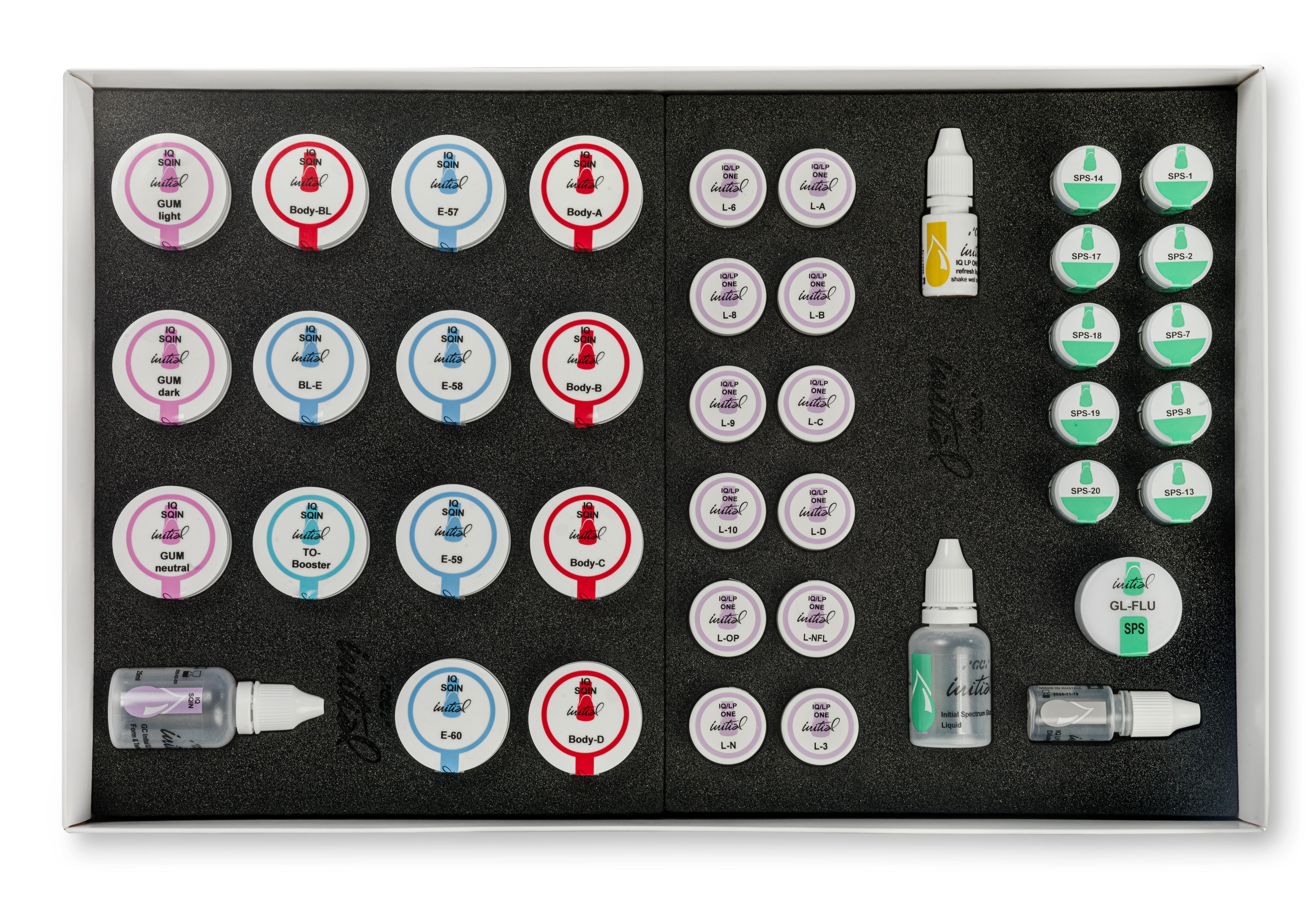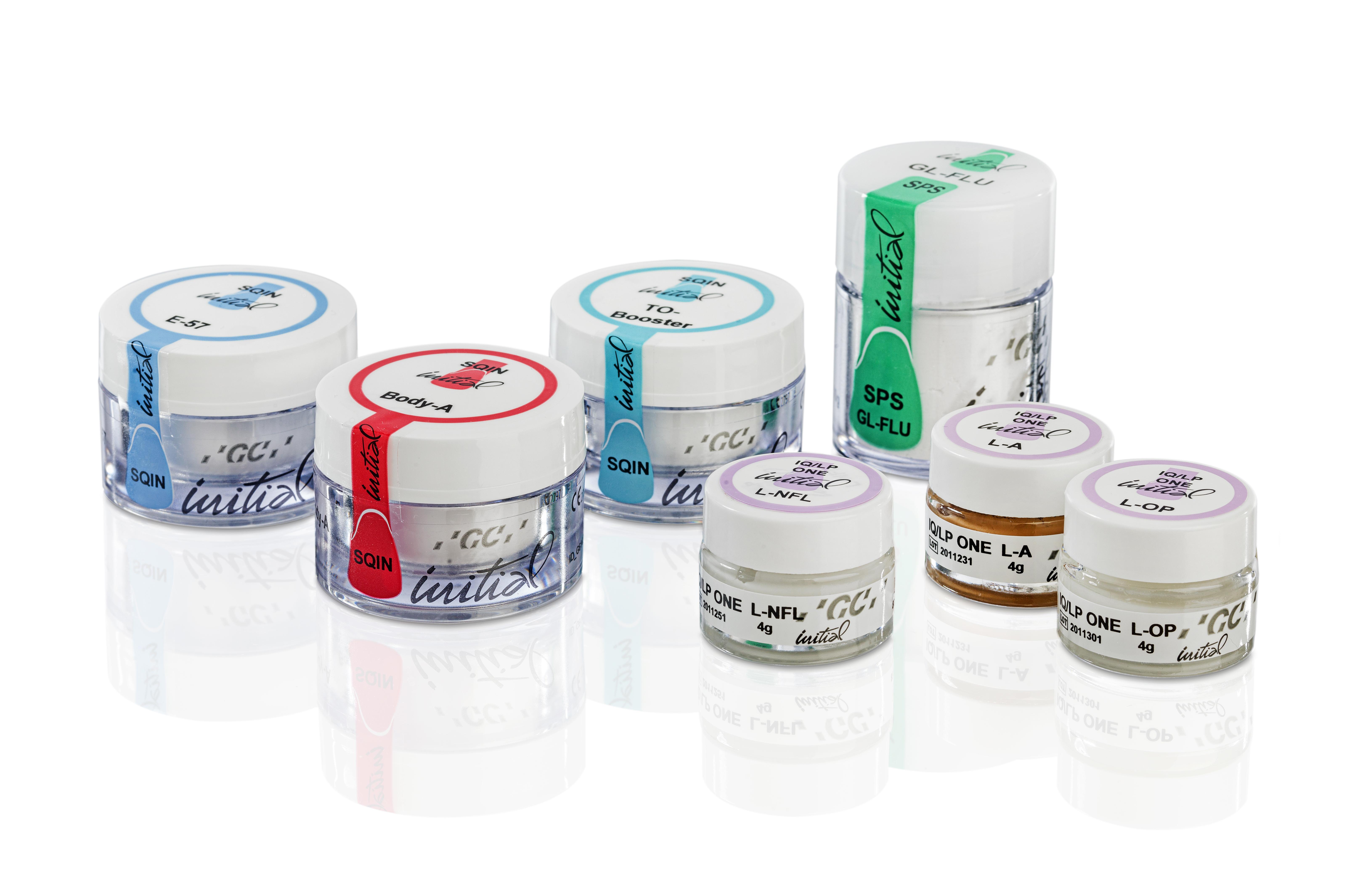 The GC Initial IQ ONE SQIN System Set is based upon the GC Initial “IQ philosophy” and consists of different perfectly adapted ceramic materials: