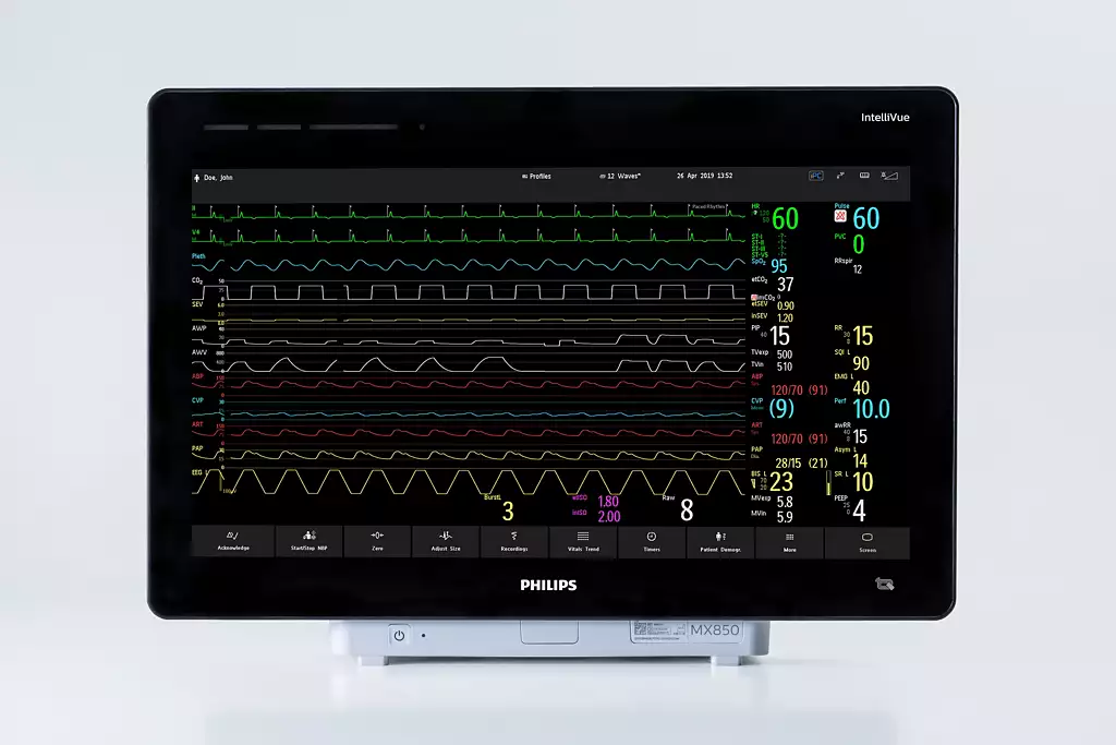 The IntelliVue MX850, with its multi-display and multi-user capabilities, is built for the highest-acuity patients and the most demanding interventions, such as cardiothoracic or transplant surgery. Featuring direct access to the hospital applications via HTML5, Citrix, and optional integrated PC, the monitor is also designed to support cybersecurity features such as node authentication, network data encryption, print report encryption and device data encryption, and includes a built-in RFID/NFC card reader.