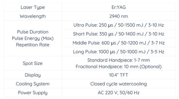 -Ultra Pulse: 250 μs / 50-1500 mJ / 3-10 Hz