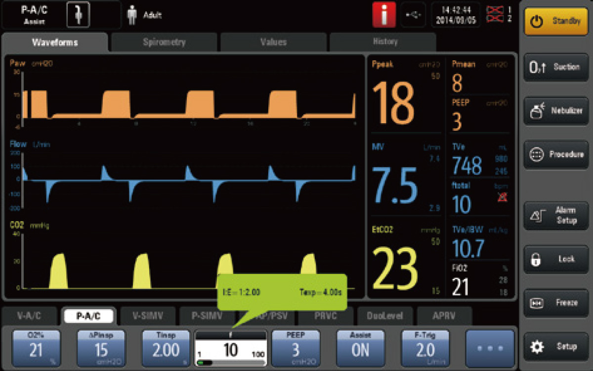 Provides comprehensive weaning assistive tools such as RSBI, NIF, P0.1 to evaluate the potential for weaning.
