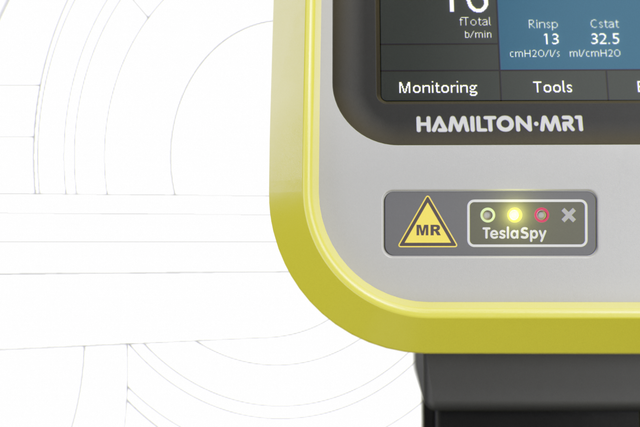 The TeslaSpy helps you to keep the ventilator at a safe distance from the MRI scanner.