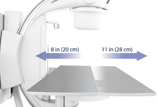 The system’s 24 in (60 cm) wide, high-capacity table and extended transverse movement range of 19 in (48 cm) allows you to accommodate a broad variety of patients for safe and comfortable imaging.