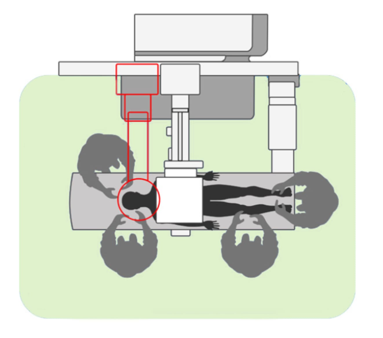 -Adjustable C-arm and table positioning to work around the patient's position.