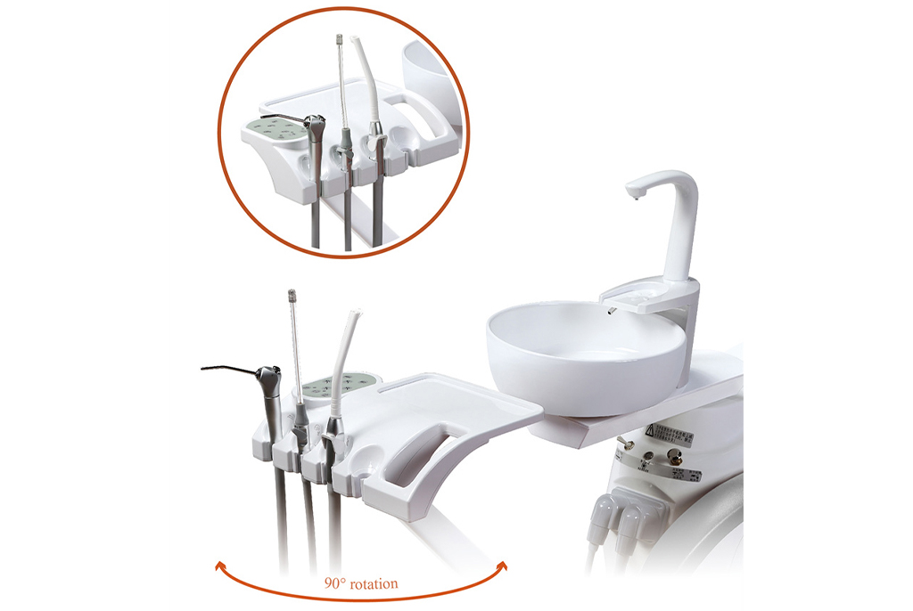 Ceramic spittoon surface is smooth, removable for cleaning, Always keep it in a clean, hygienic and safe state. The 90-degree rotation design is more convenient for patients to use in the treatment.