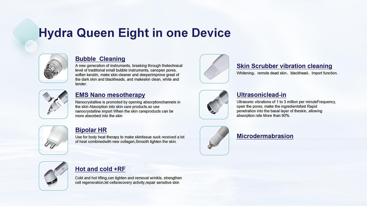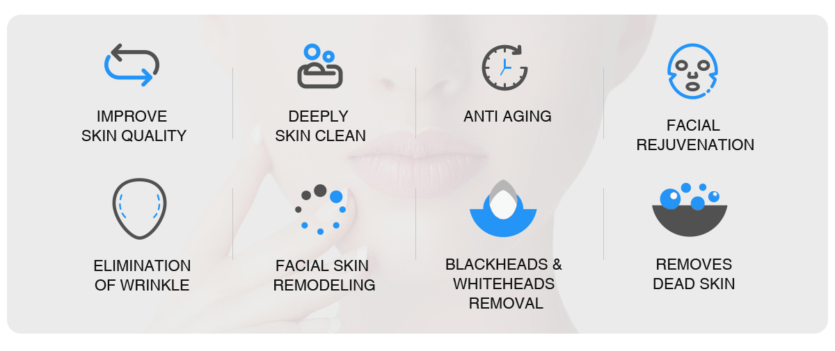 A new generation of instruments, breaking through thetechnical level of traditional small bubble instruments, canopen pores, soften keratin, make skin cleaner and deeperimprove great of the dark skin and blackheads, and makeskin clean, white and tender.