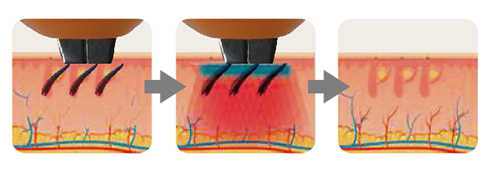 -Subsequently, the laser beam penetrates the skin, where it is absorbed by the hair follicle and transformed into heat