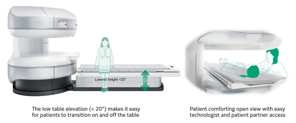 A space saving wide open MRI providing affordability, positioning versatility and more comfortable patient experiences. The streamlined single-pillar shape pleases your patients and minimizes space requirements. Minimal power demand, helium free technology and air cooling keep operating cost low. Fujifilm electronics and support ensure performance and reliability, and advanced automated imaging technologies and shortcuts enhance workflow efficiency and optimize image quality.