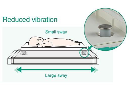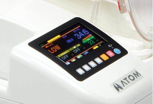 The operation panel is placed on the side by the infant’s head to facilitate easy observation of vital signs even during treatment.