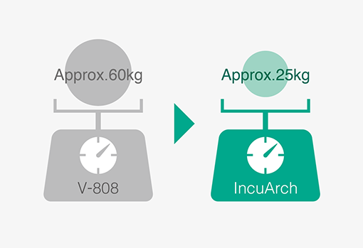 The weight of the main body is approximately 25 kg*. Designed to be lightweight and compact.