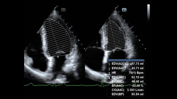 Auto EF is an intelligent way to analyze 2D echo clips to automatically recognize diastole & systole frames and output a series of measurements to evaluate left ventricle function for more productivity, such as EDV/ESV/EF.