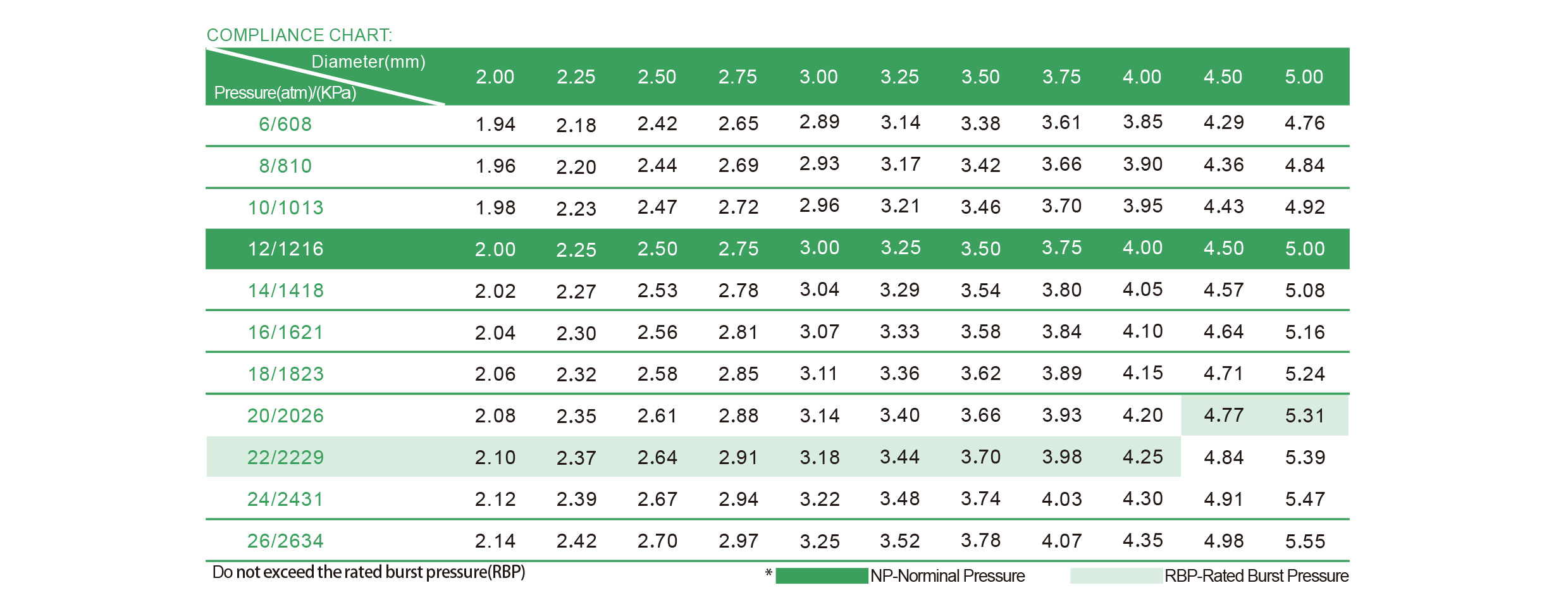 Rated Burst Pressure:22atm (φ2.0mm~φ4.0mm) / 20atm (φ4.5mm~5.0mm)