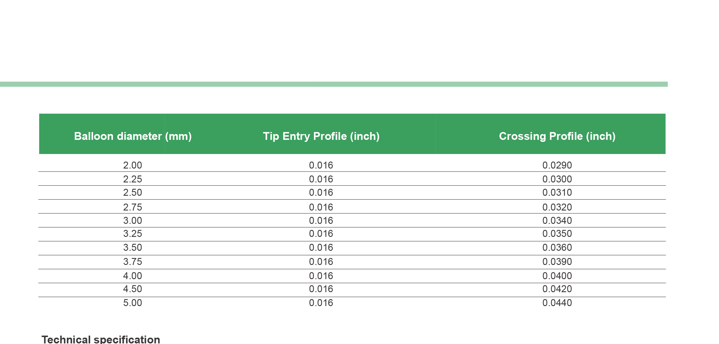 Balloon Diameter (mm):1.5, 2.0, 2.25, 2.5, 2.75, 3.0, 3.25, 3.5, 3.75, 4.0 , 4.5, 5.0, 5.5, 6.0