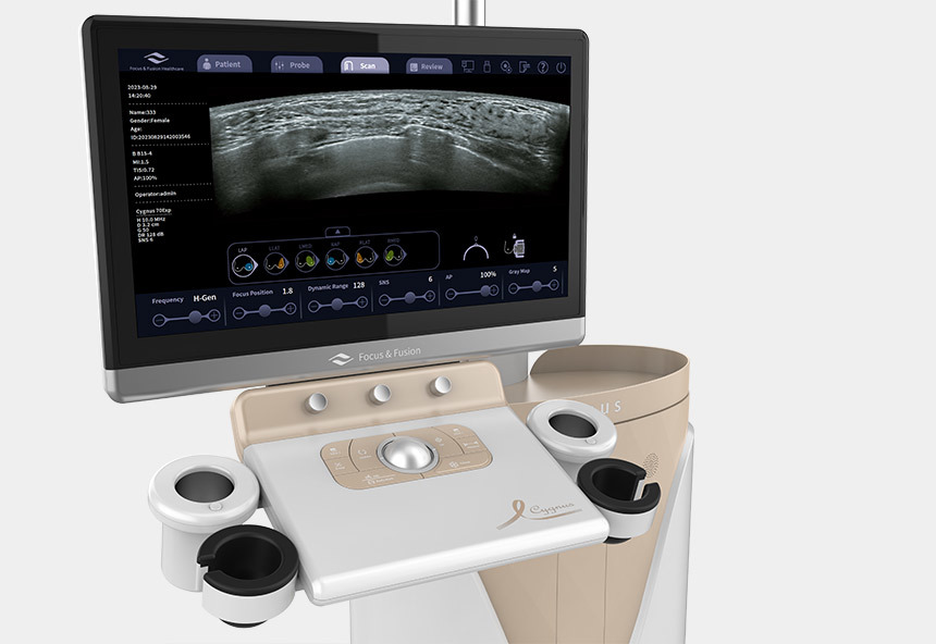 The multi-modality 3D breast ultrasound integrated system pioneered by Focus & Fusion Healthcare, which enables the separation of scanning and diagnosis to improve the diagnostic efficiency, is equipped with HHUS to improve the diagnostic confidence, providing a new clinical ultrasound solution for breast diseases, integrating screening, diagnosis, treatment and quality control in one, creating a new era of breast disease diagnosis and treatment.