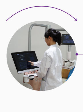 The design of dual touch screen greatly increases the freedom of operation, and the simultaneous interaction between the control module and the scanning module is designed with full consideration of ergonomics, increasing the ergonomic compatibility for the operator.