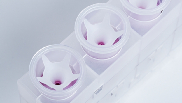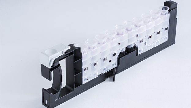- Modular Reagent Cartridge: The primary package for your reagents consist of up to five vials, which can be assembled in any configuration, providing multiple unique assay configurations. An innovative dynamic closing system optimizes on-board stability and reduces the risk of spillage and carry over.