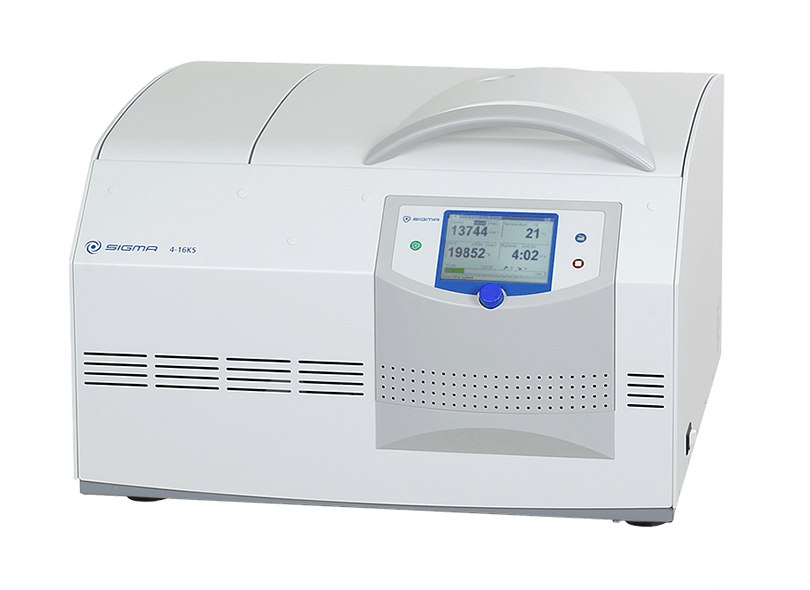 The Sigma 4‑16KHS refrigerated and heated benchtop centrifuge excels with diverse rotor configurations and outstanding capacity. Large specimen volumes can also be processed efficiently thanks to the maximum capacity of 4 x 750 ml in a swing-out rotor or 6 x 250 ml a fixed-angle rotor. The especially smooth running ensures excellent and reproducible sedimentation results. With its versatile range of rotors, it is suitable for research labs, hospitals, universities and pharmaceutical labs, as well as cell culture and biotechnology applications – especially with specimens whose viscosity must be reduced during centrifugation.